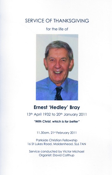 The first tribute was read by Dad’s brother, Dennis and focussed on Dad’s early life and growing up initially in north London. Dad was born in 1932 and the family moved to Maidenhead in 1937.