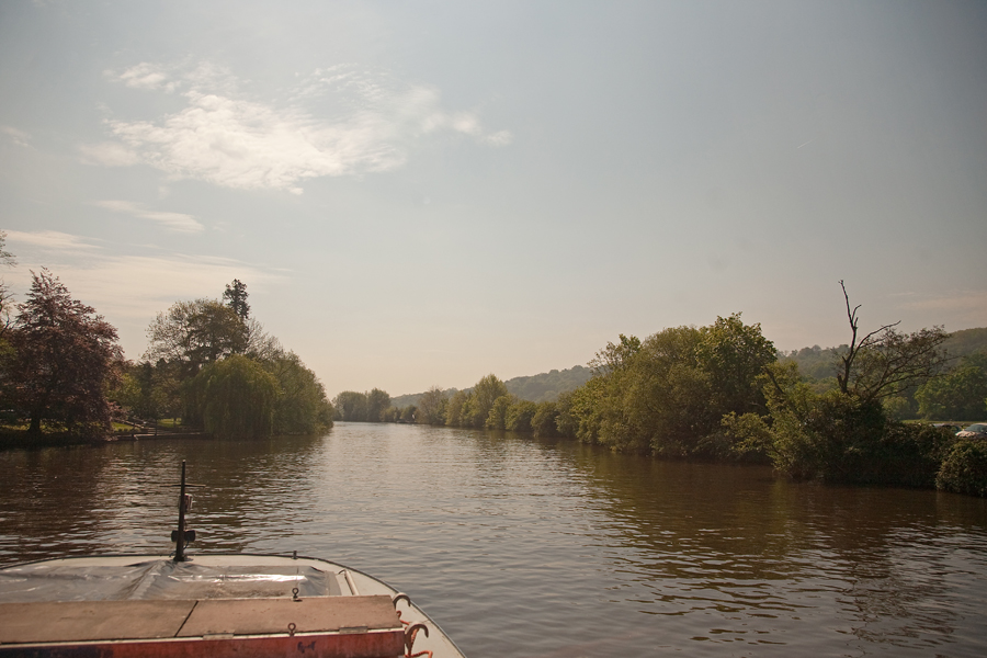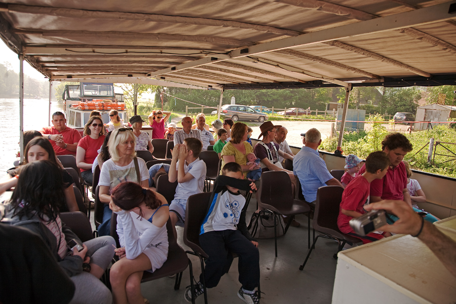 Once aboard the Bray Princess we took our seats on the upper deck in the warm spring sunshine. Our journey first led us upstream to Old Windsor before we retraced our route, passing the boat’s mooring and headed on downstream to the crowded riverside haunt of Runnymede itself.