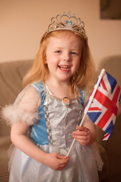 Holly was very excited by the wedding and last night had described it as being ‘more exciting than Christmas!’. Not surprisingly we were all up fairly early and the television was on by 7am. Holly decided to dress in her blue Cinderella dress for the occasion!