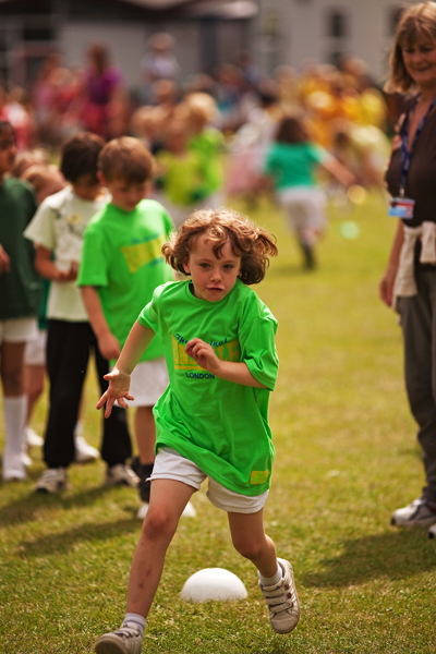 I arrived in Maidenhead as the children and parents were swarming out onto the playing field. Sports Day is a big day at Rebekah’s infants school and all the children take part. Teachers play various roles on the day and one of these was Master of Ceremonies. This involved using a megaphone that crackled louder than the words that emerged from it! Others helped by ringing bells at opportune moments, keeping the scores and generally maintaining some semblance of order among the excited participants!