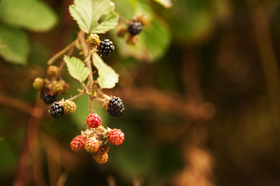 The year is moving on fast and the wheat is rapidly turning golden brown. Further up the track we found that the blackberries are ripening fast and tasting delicious!