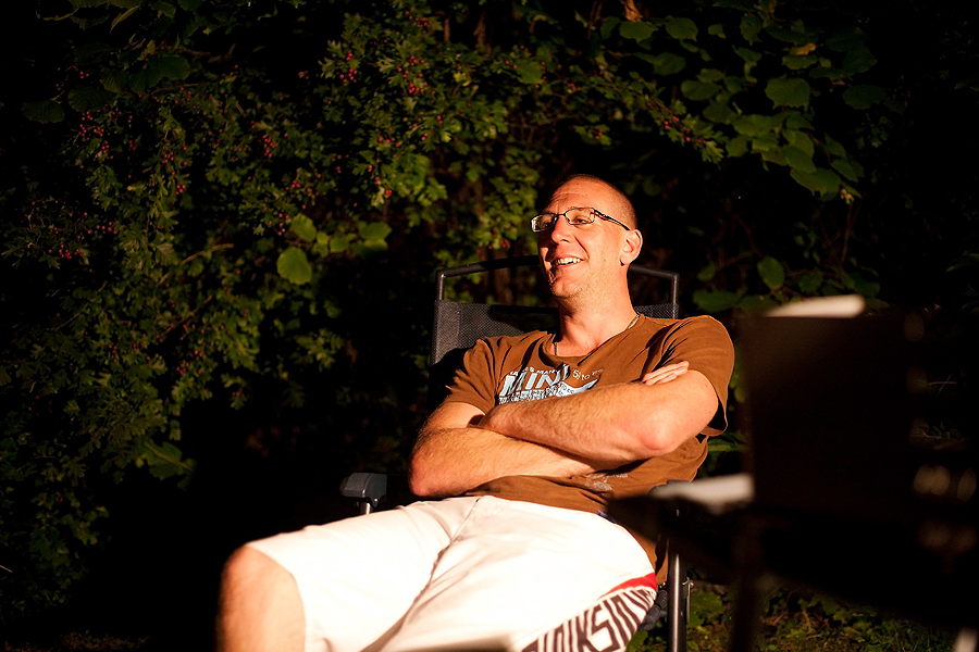 The al fresco evening passed with much merriment and laughter – not least caused by my consuming a glass and a half of wine!