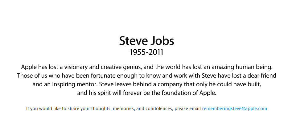 Pingback: Steve Jobs: 1955-2011 – 6 October 2011 « The Andrew Burdett Blog