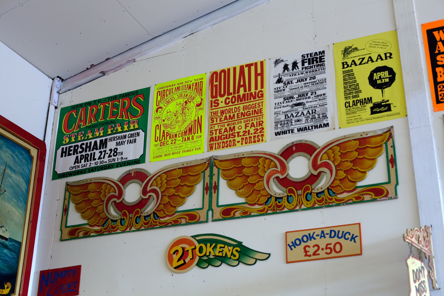 We went into a couple of the large sheds where repainting was being carried out on one of the rides. Also displayed was a model of the ‘steam yachts’, as well as various old steam fair posters and photographs.