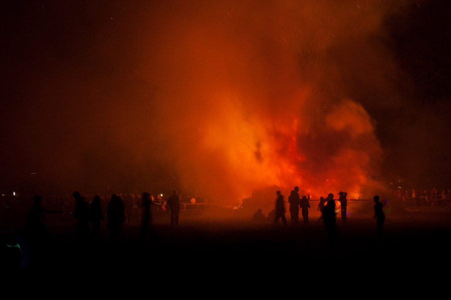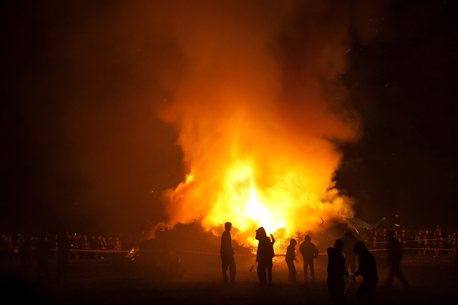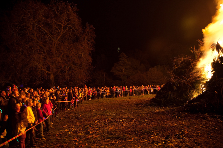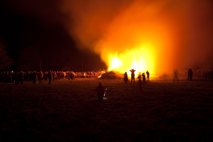 Shortly after 6.30pm flaming torches were carried across the field, reeking of paraffin, before being thrust into the heart of the pile of branches.
