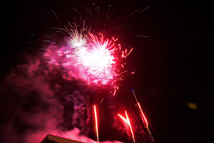 This year, due to inclement winds, the fireworks were launched from the roof of St Ives House, just across the road from the Town Hall. This arrangement seemed to work very well and the fireworks were certainly the highlight of the evening.