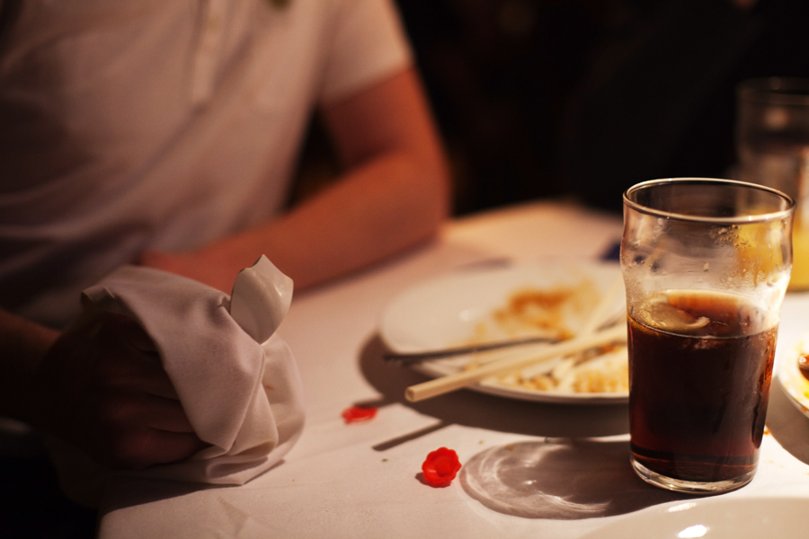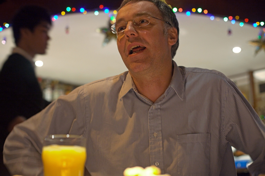 One highlight occurred when one of the waiters was attempting to carry too many dishes from the table to the kitchen. This resulted in a loud crash as a number of them fell to the floor. We managed to salvage a shard of porcelain as a memento of the occasion.