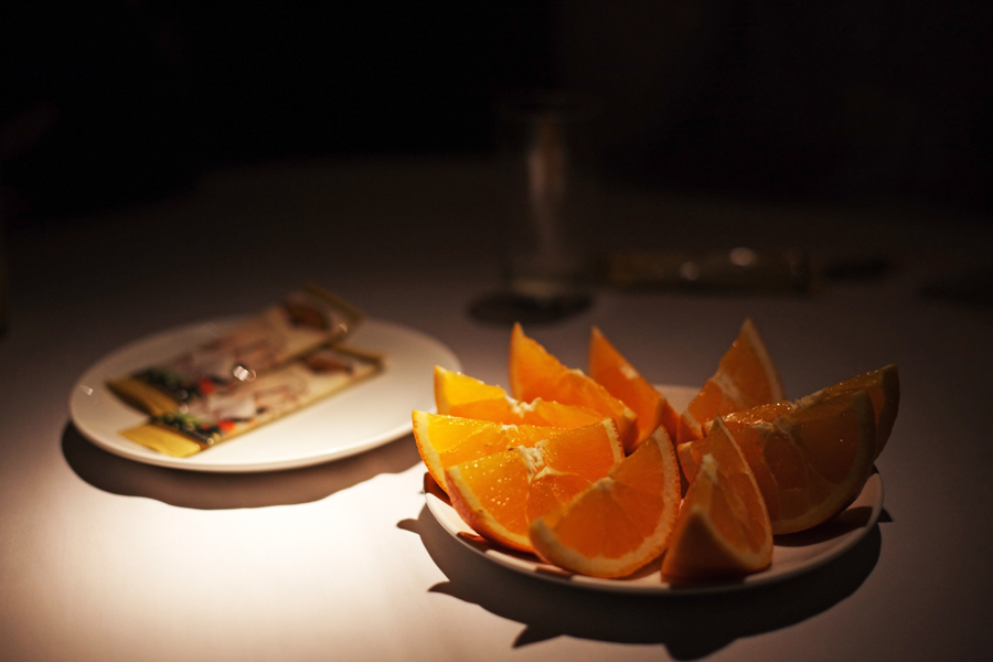 The meal was completed with the arrival of warm ‘face cloths’ and a dish of orange segments.