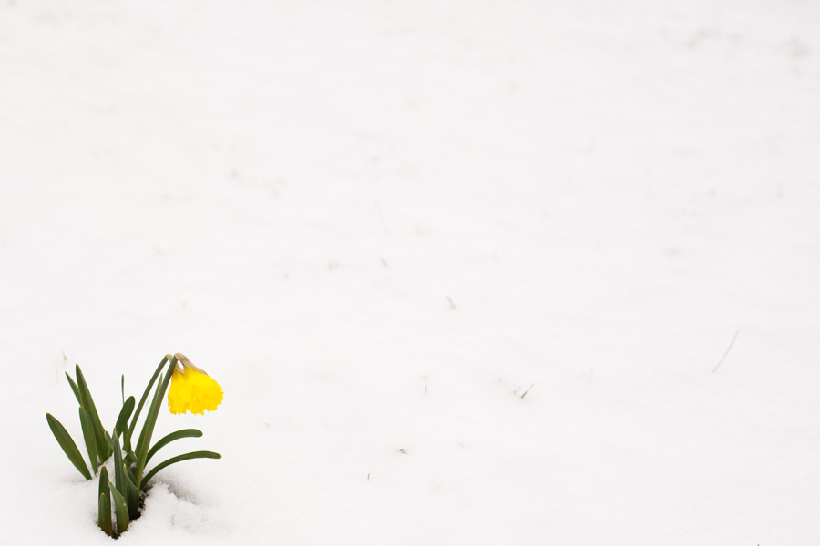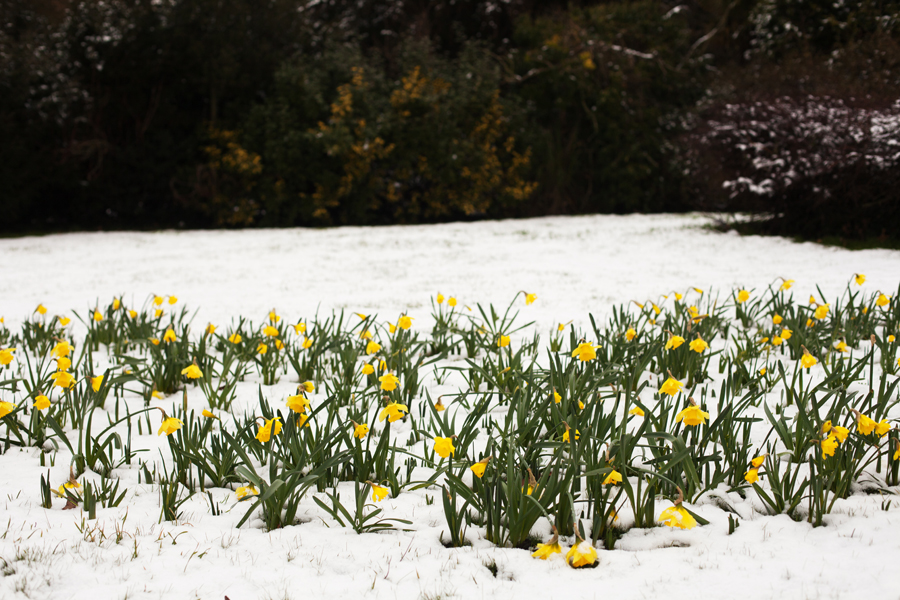 On the way we popped in briefly to see Grandma’s headstone, which is finally in place and also to see the daffodils in the snow.