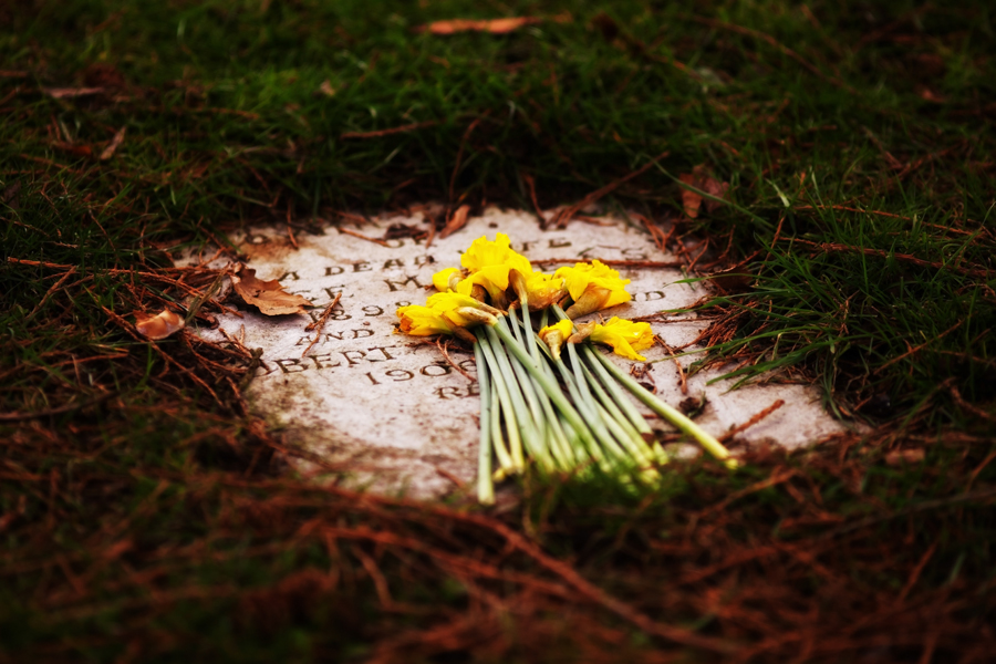 While we were in the churchyard I spotted these daffodils which had been left on an old grave, presumably intentionally. I found them somewhat poignant.