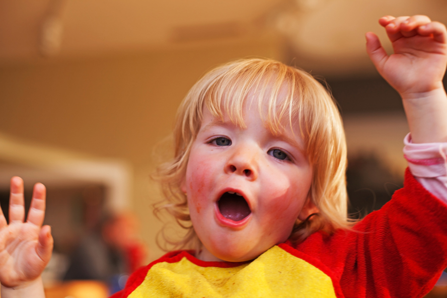 Once the offending fruit had been removed and passed on to Rebekah, Emily enjoyed her dessert.