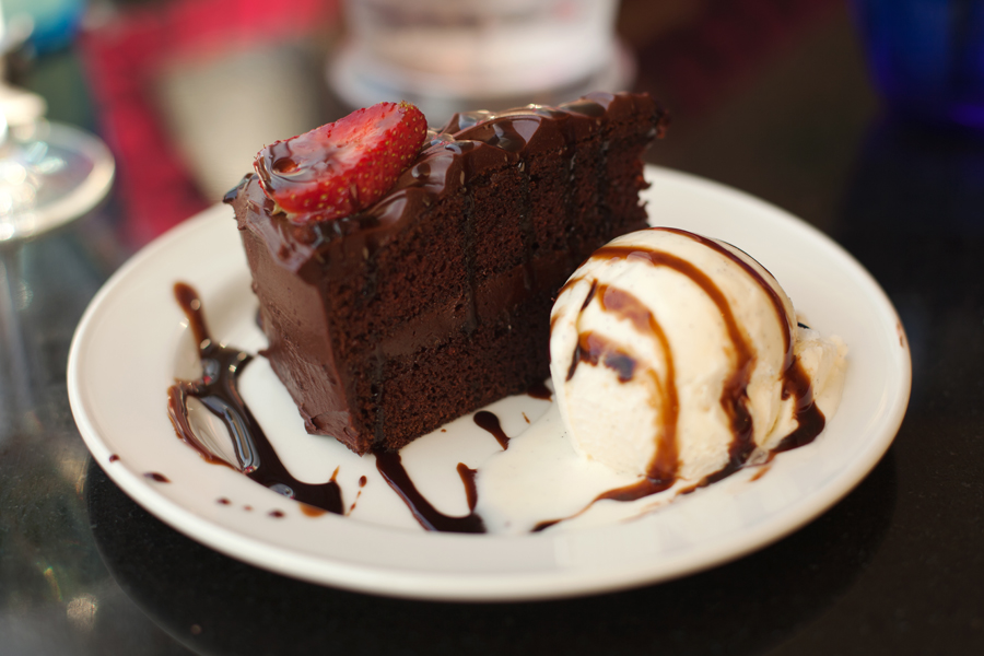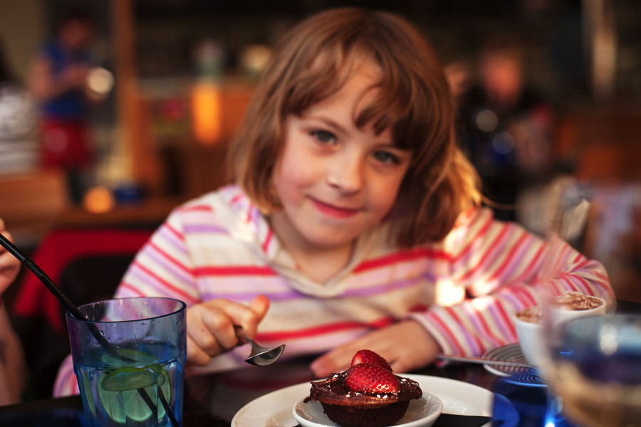 Eventually our various, mainly chocolatey puddings turned up.  Emily was a little disappointed to spot the strawberry on top of hers – she’s not a fan!