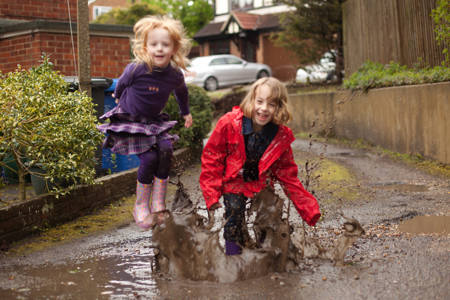 Sometimes, there’s nothing better to do on a wet day than to splash in puddles!