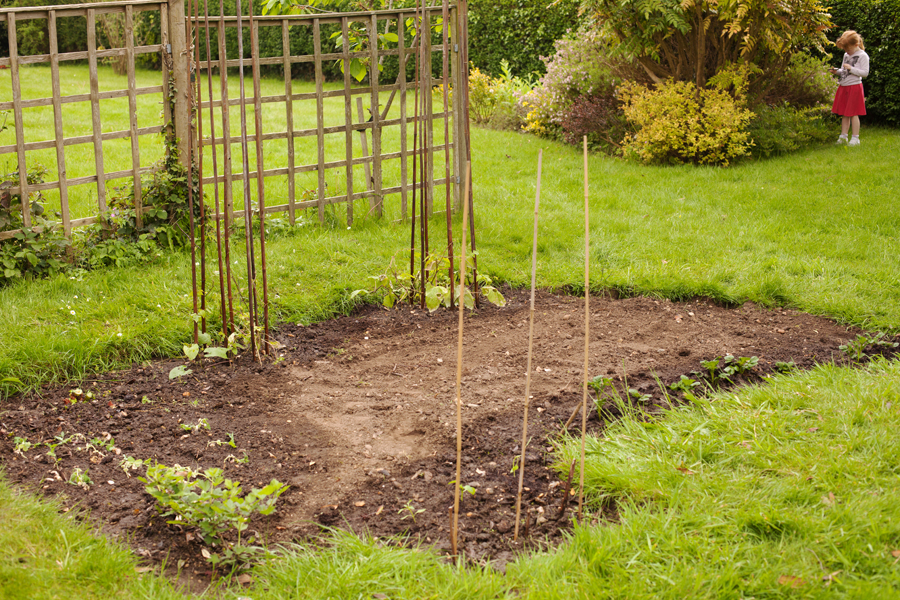 Today we planted around 10 pea plants at the top of the vegetable plot – between the rhubarb and the goosberry bush. Hopefully they’ll be successful.