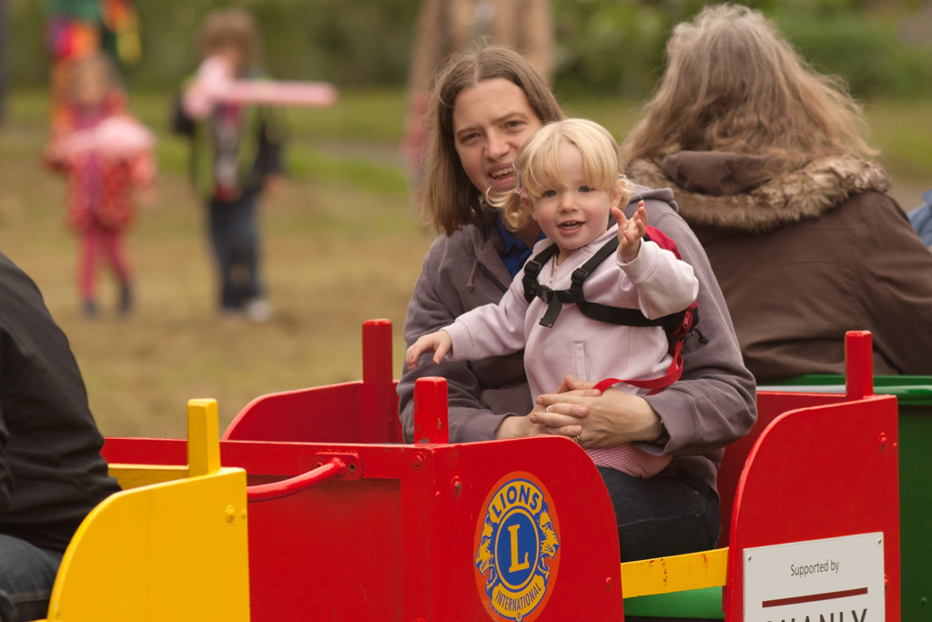 Sarah took Emily on the Lions Club train, which was offering rides for children around the park.