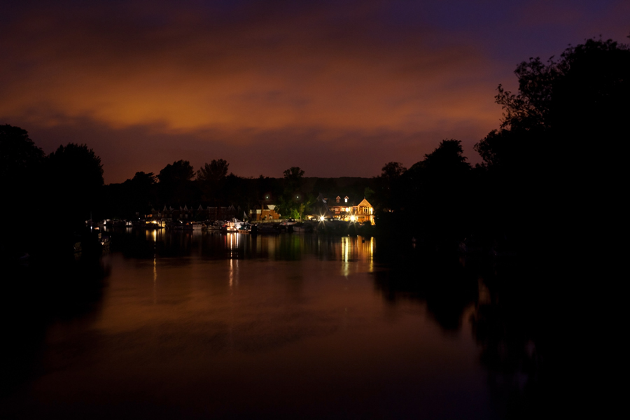 Cutting through some of the minor Marlow roads, we eventually rejoined the river as it flowed downstream towards Bourne End and paused on a bench beside the river for the customary snack stop at around 2am before continuing through gated fields (some of which contained cows!) until we finally reached Bourne End, where we recrossed the river.