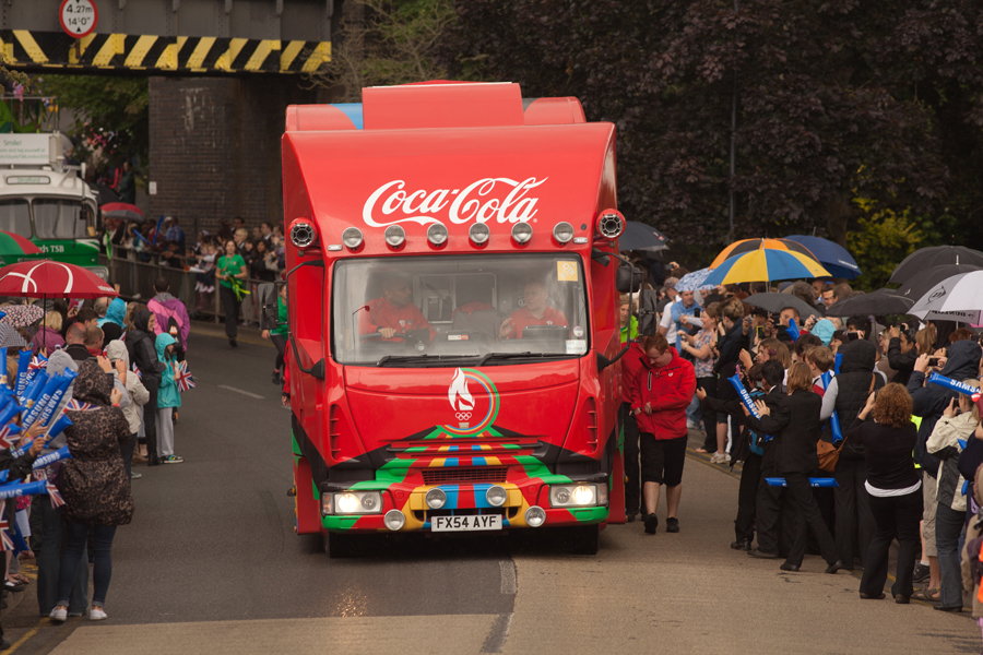 Ahead of the torch itself were a number of ‘sponsor’ vehicles, all plying their wares to the crowd.
