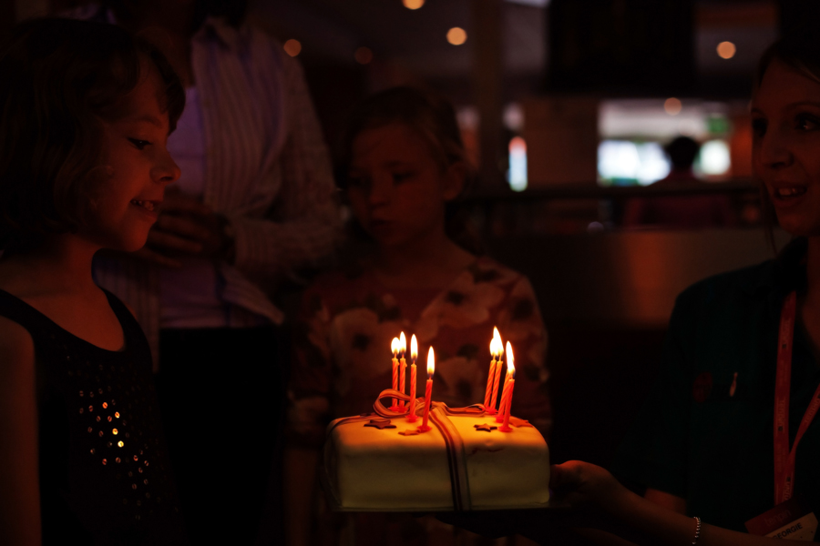 The food (largely nuggets and chips) followed by tubs of ice cream were hastily devoured by the youngsters. Later, one of the helpers brought along the birthday cake with lit candles on, for Rebekah to blow out.