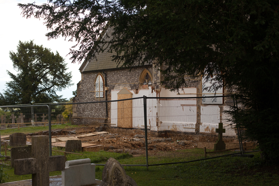 Foundations for the new vestry at Cookham Dean Church are now in place
