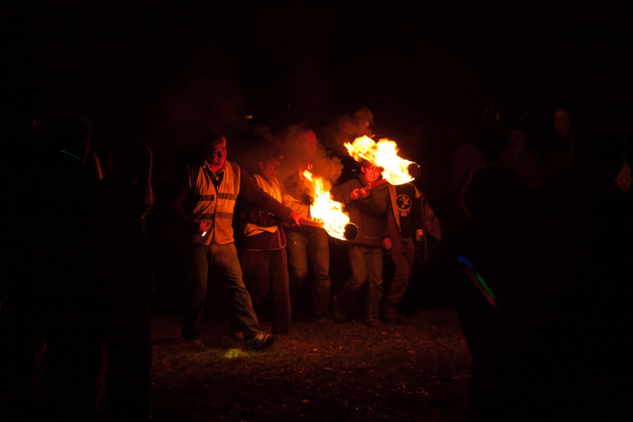 After around half an hour, the traditional flaming torches were being lit and taken over to the huge pile of branches, before being thrust inside the pyre.