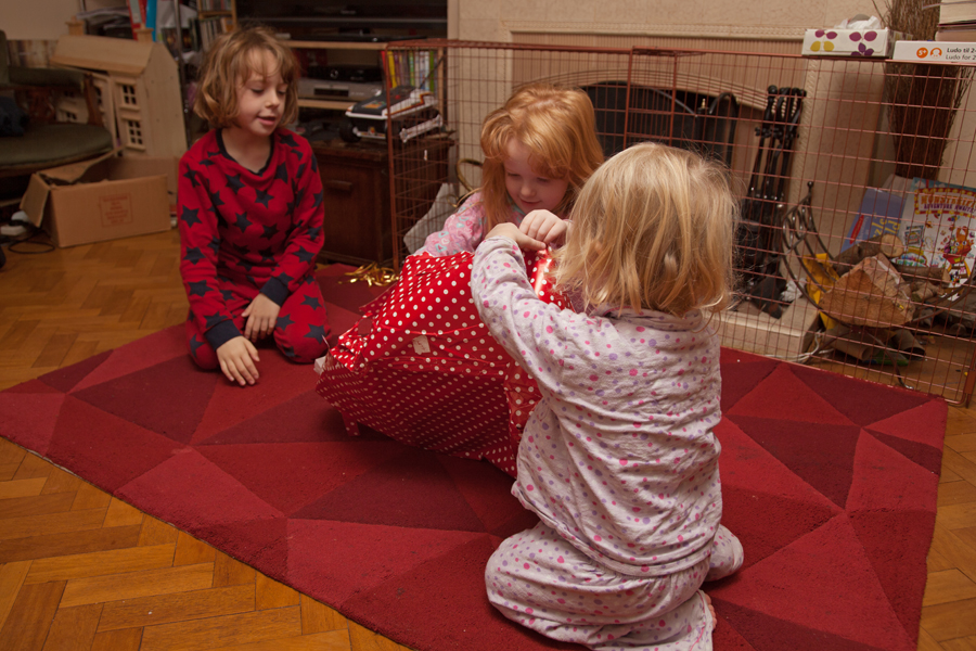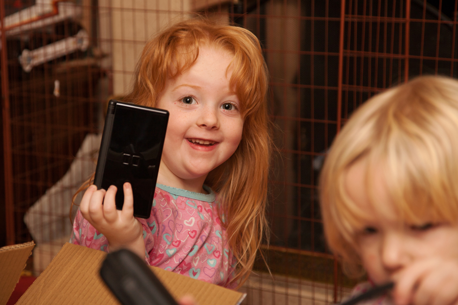 This morning she was awake from around 6am and opening her first presents by 7am. Her main present from us was a Nintendo DS Lite – the same as Rebekah already has.