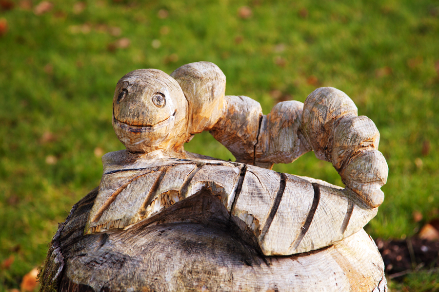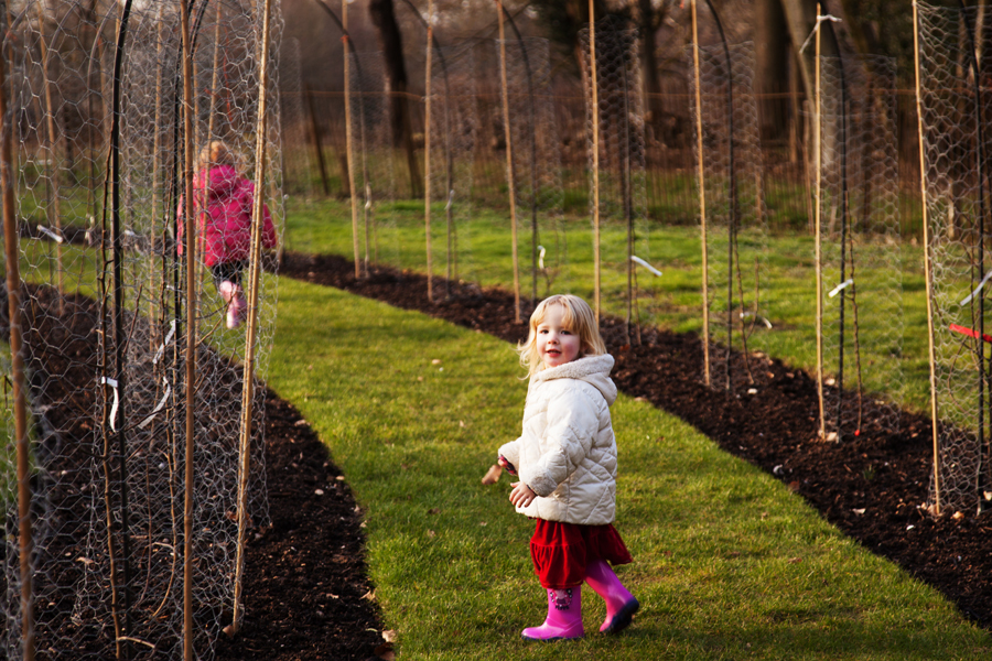 The Round Garden is in process of restoration as a formal fruit orchard with both apple and pear trees being grown up supports.  Dotted around are various wooden sculptures which create added interest, particularly for the children.