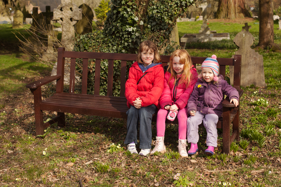 Sitting on the bench in Cookham Dean churchyard