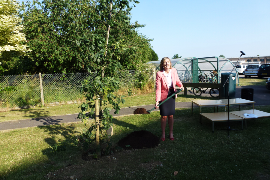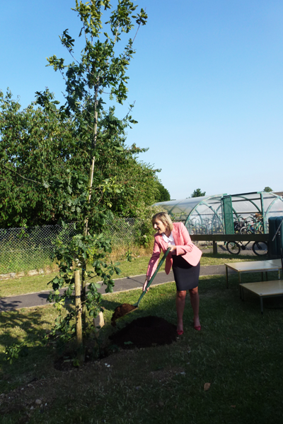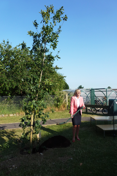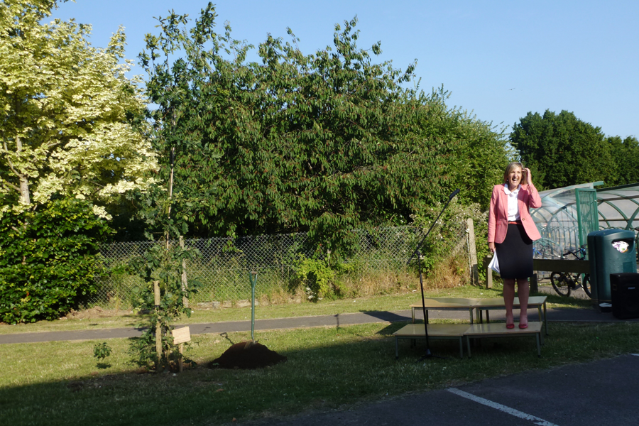 One of the items on the agenda was the planting of an oak tree to celebrate the anniversary. Head Teacher, Ms Tanya White had a speech arranged, but given the handful of onlookers, she abandoned both her dais and her formal words and opted for a few informal remarks instead.
