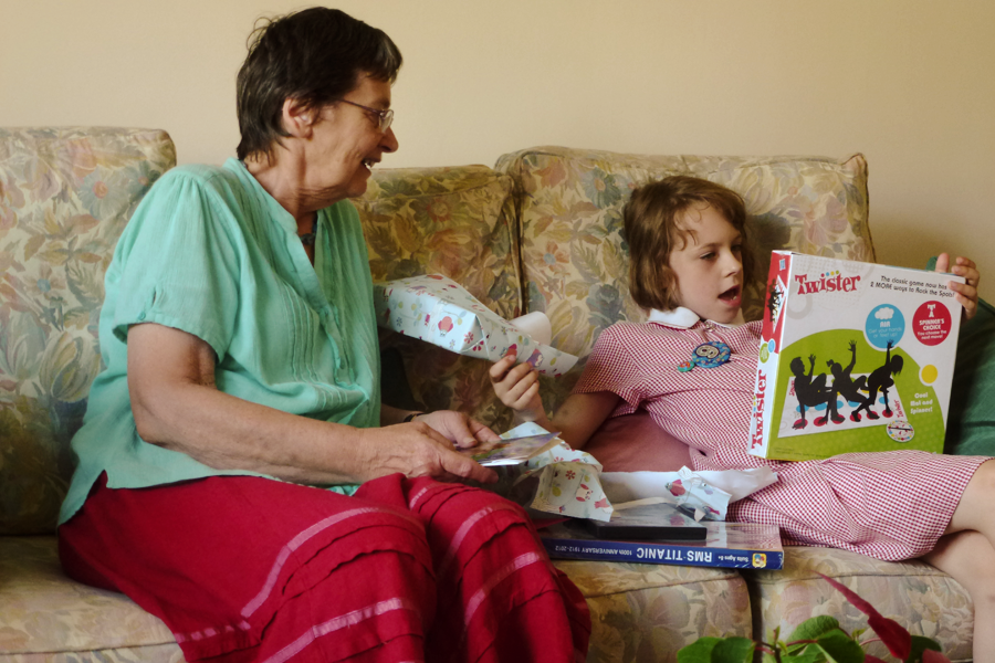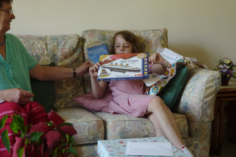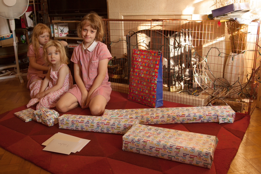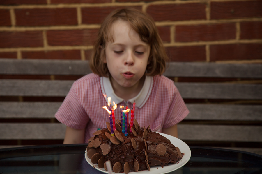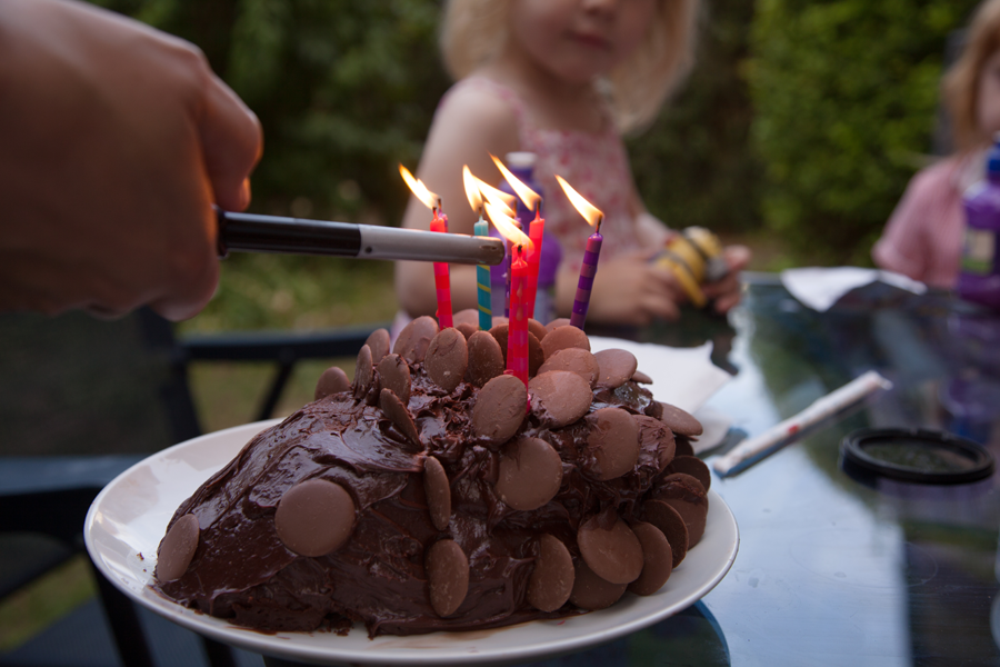 After school we popped around to various relations with her to collect presents before returning home for some birthday cake in the garden.