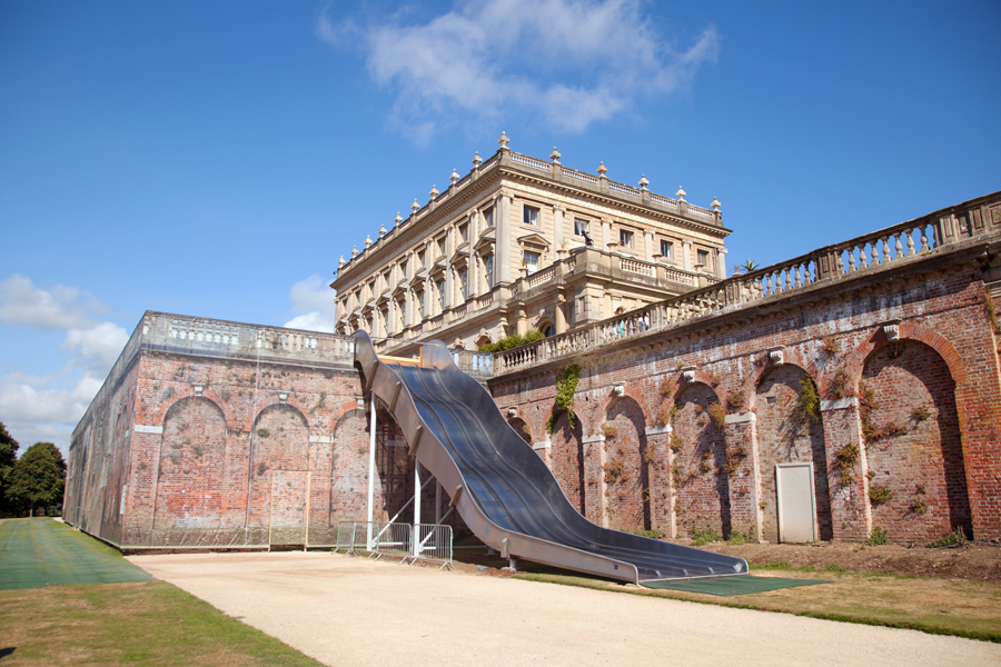 Having heard about the renovation work on the South Terrace at Cliveden and the installation of a giant slide to help visitors get down to the ground level from the terrace, we decided to get up early and take a look.