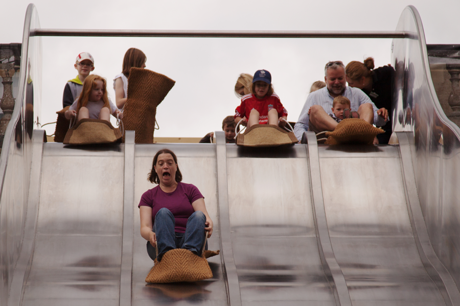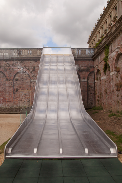 By the time we got back to the house, it was clear that things were happening and members of staff seemed to be appearing. Before long we were allowed through the doors and climbed aloft up temporary steps to reach the top of the slide.