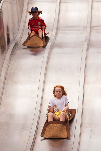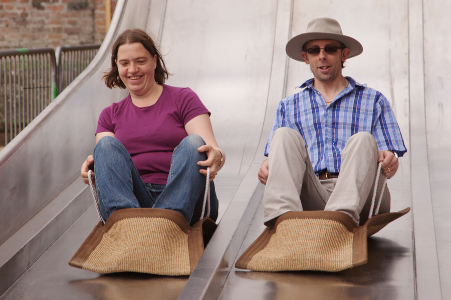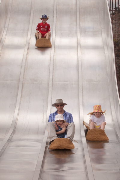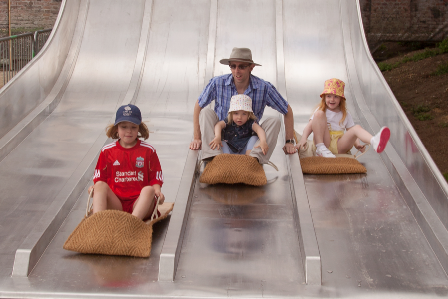 The slide is great fun, although Emily was a little unsure. After we’d had a couple of goes, Sarah took a turn with Emily.