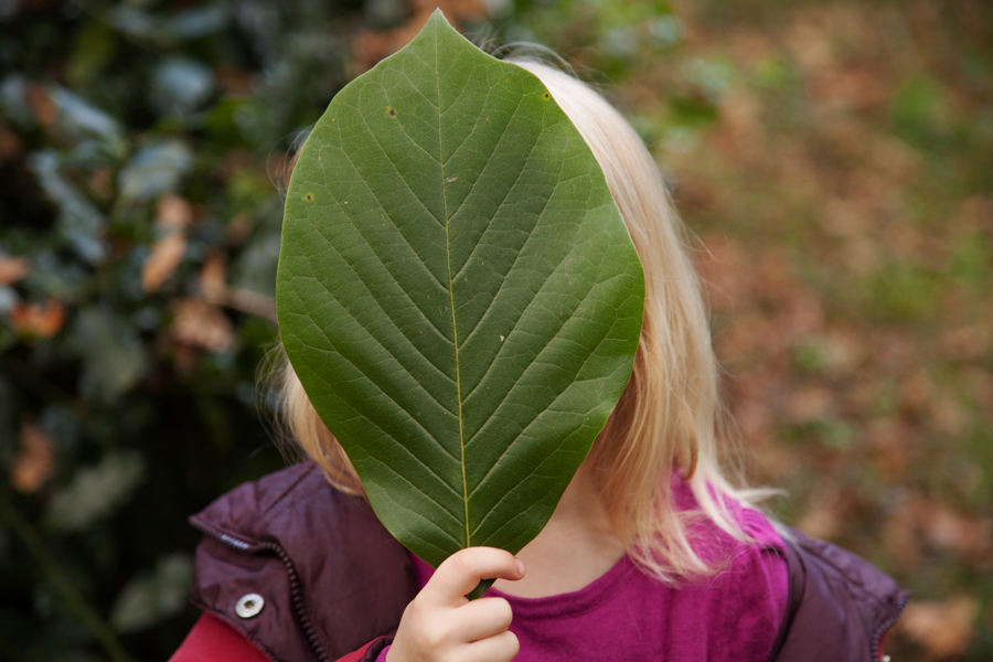 Emily with a giant leaf