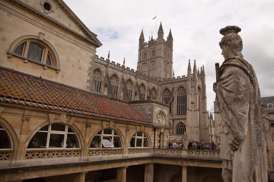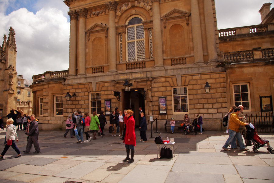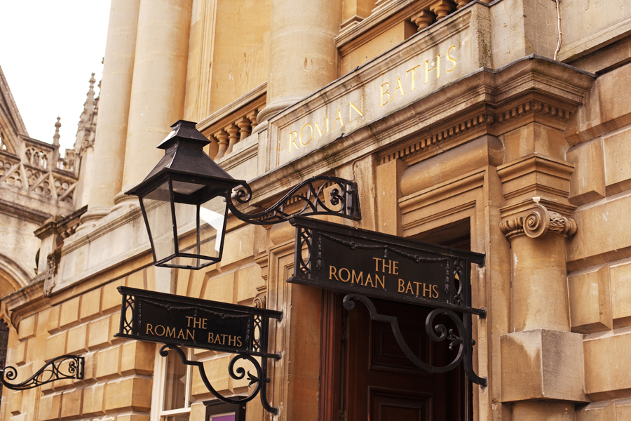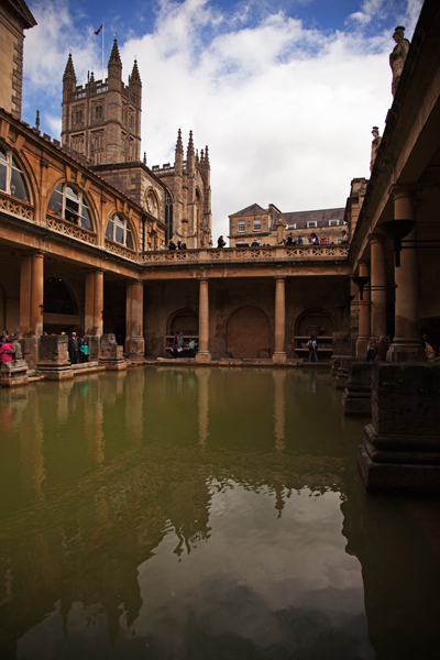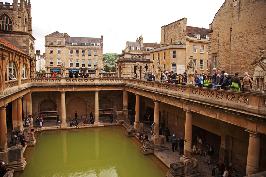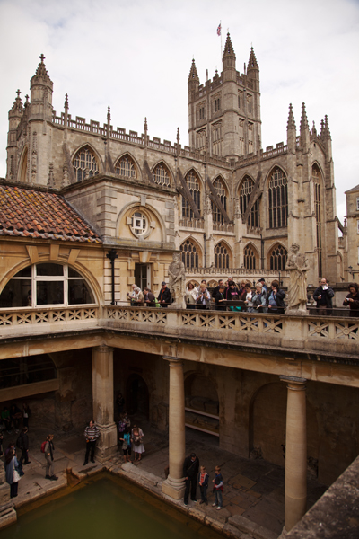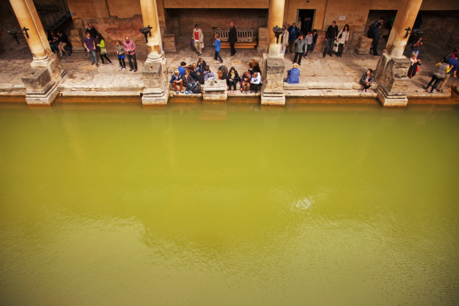 Roman Baths (n.) Ancient site of Roman watering, now largely obscured behind foreign tourists armed with audio guides.